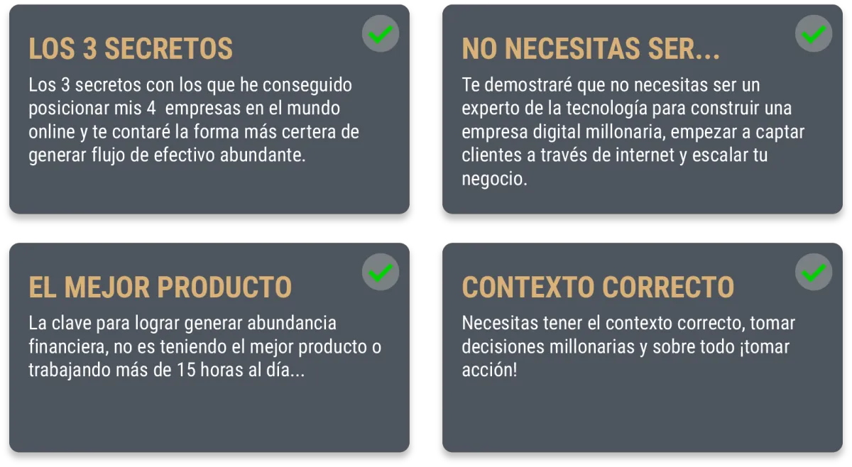 Desde hace 15 años soy empresario, autor e inversionista y dentro de las estrategias que te voy a compartir en este evento gratuito podrás replicar las fórmulas exitosas que he aprendido al hacer negocios con empresarios top internacionales como JB Straubel (cofundador de la marca de autos eléctricos TESLA), Nick Vujicic, John Maxwell, Grant Cardone, Frank Kern, Don Tapscott, Robert Kiyosaky, Anthony Robbins y muchos más, así como las estrategias exitosas que yo he desarrollado por cuenta propia PARA QUE TÚ TAMBIÉN TENGAS RESULTADOS INCREÍBLES EN TU FACTURACIÓN.